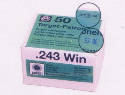 Guntex A/S, Skjern, tilbagekalder Geco riffelpatroner i kaliber .243 Winchester med produktionsnummer 212 34 44 og lot nummer 53 QE.…