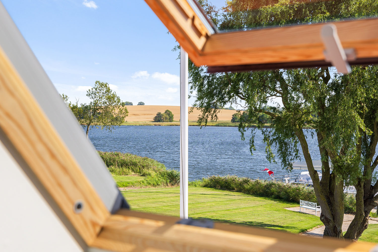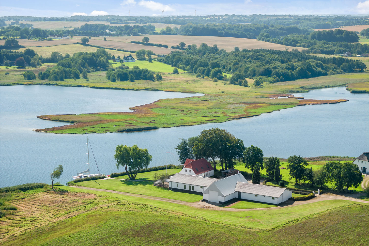 Aastrup Søndermark 20 ligger ned til Haderslev Fjord med fri udsigt over vandet og ugenerede omgivelser. Hovedhuset på 173 m², opført i 1912 og renoveret i 2005, fremstår i velholdt stand. Til ejendommen hører rummelige driftsbygninger med værksted, samt en separat lejlighed med tre værelser, badeværelse og stort opholdsrum.