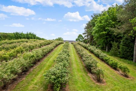 Ejendommen ligger tilbagetrukket fra landevej med kørsel af smuk allé, som byder ejendommens gæster velkommen