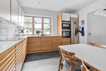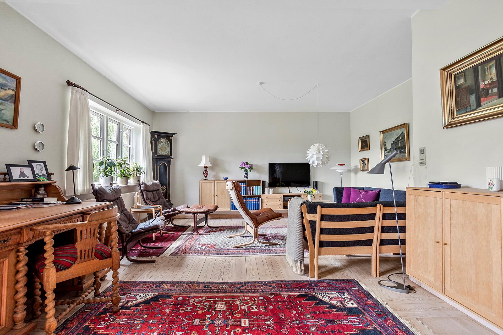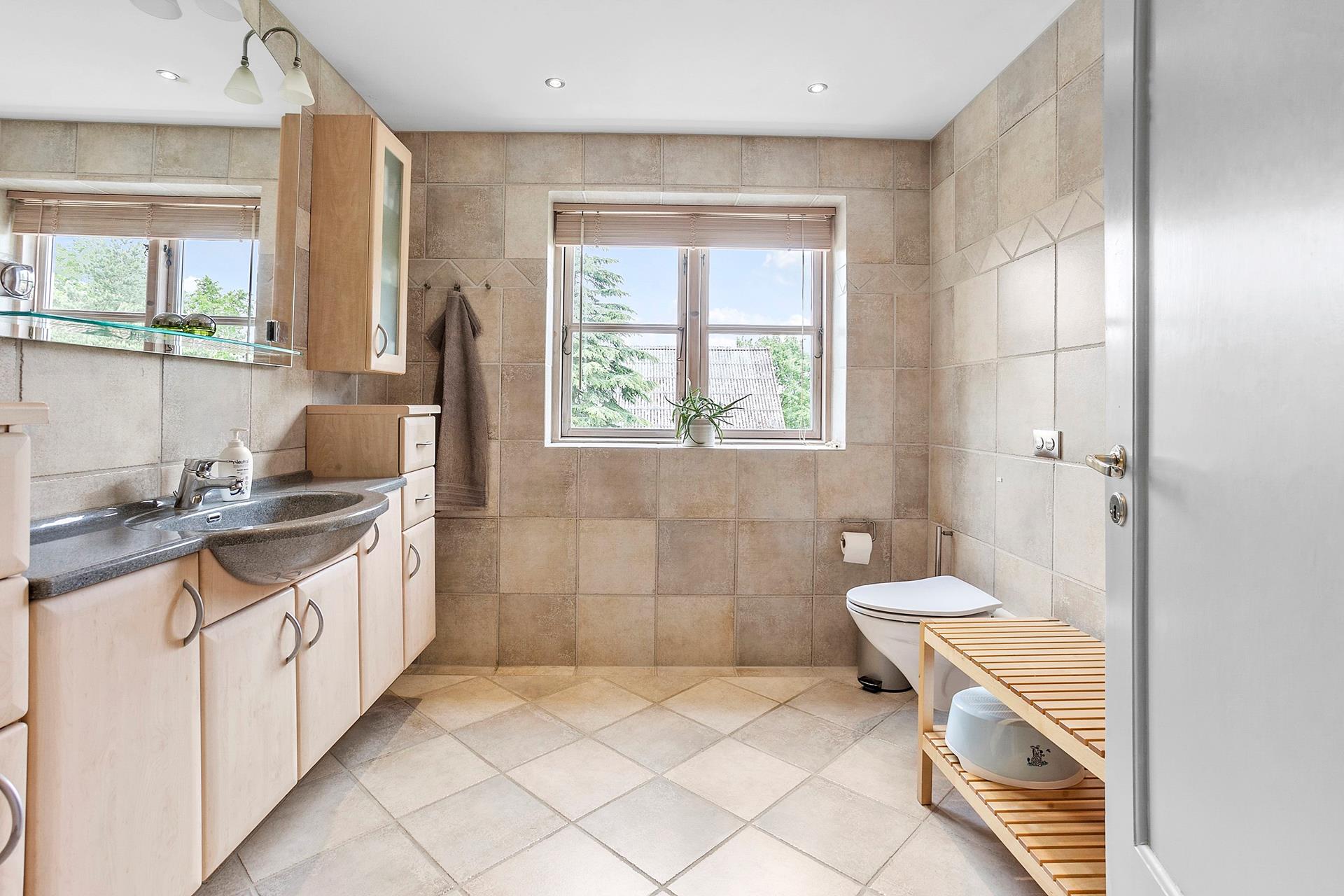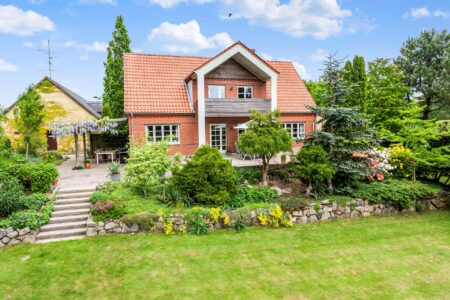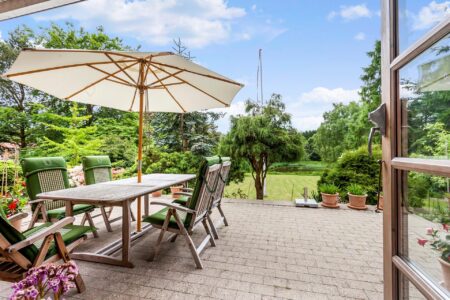 Mod syd skråner den parklignende have let mod sø, som kan nydes fra såvel terrasse og stue samt soveværelse på 1. salen.