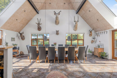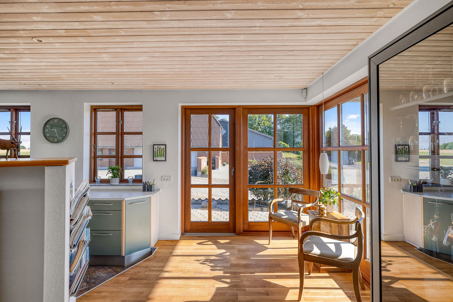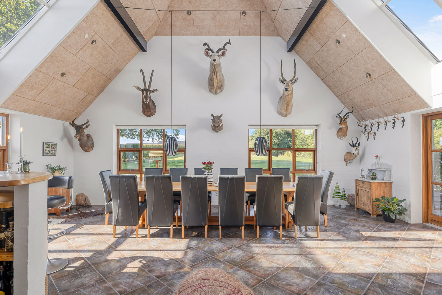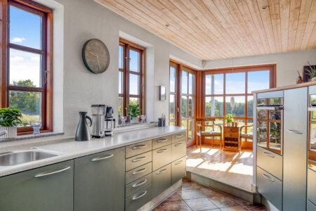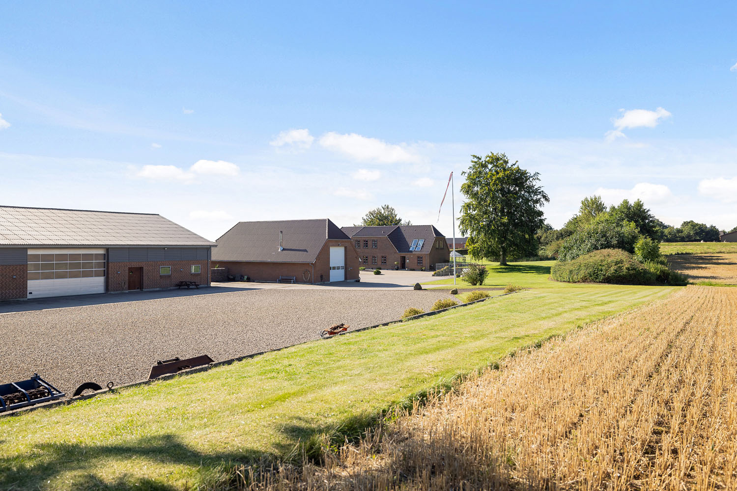 Bolig og erhverv forenes med et rummeligt beboelsesareal på 324 m² fordelt på to etager. Derudover inkluderer ejendommen en isoleret dobbeltgarage med værksted samt en maskinhal på 467 m².