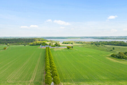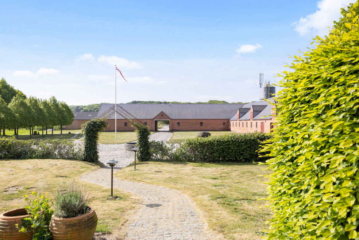 Til ejendommen hører ca. 10 ha samlet jord i kuperet terræn samt over 2.200 m² udbygninger,