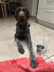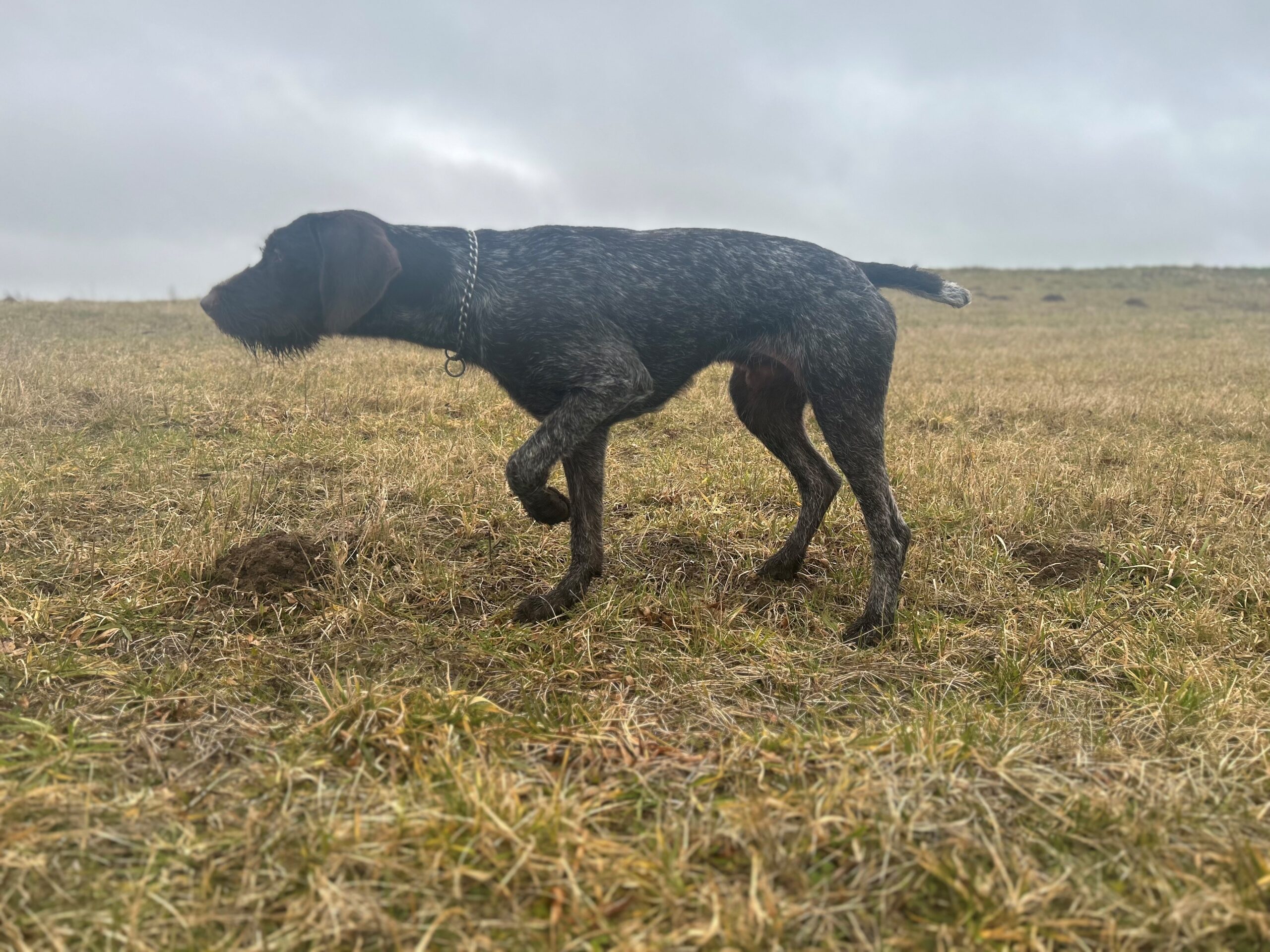 Toftebo Gundogs Aslan er 2 år, han er glad for mennesker og hunde, vant til at køre i bil, være i hundegård og inde i huset. Han er færdigtrænet og har været med på jagt sidste år. Han apporterer alt, ræv, kanin, fuglevildt – på land og i vand. Han har en 1. præmie på schweissprøve 3 timer/400 meter samt 20 timer/400 meter. Han har bestået apporteringsprøve og er præmieret i ungdomsklasse på markprøve. Han vil gerne være din bedste ven og jagtkammerat. Aslan har desværre en tandfejl, der gør, at han ikke kan bruges til avl og sælges derfor til et jægerhjem.