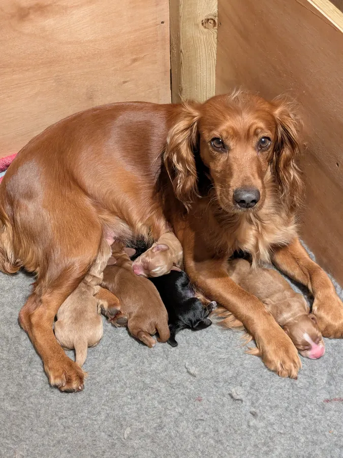 Clemmie (Mor) er en arbejdende Cocker Spaniel, hun har et smukt temperament, ekstremt kærlig og hengiven. Det er en aktiv arbejdende hund på jagt.