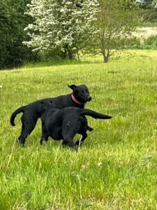 Hvalpene vil blive socialiseret med voksne, børn og andre hunde. De vil blive præsenteret for skud, skind, fjer, fløjtetrænet fra den dag de begynder at tage fast føde og udsat for forskellige former for genstande, rør mm.