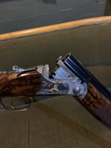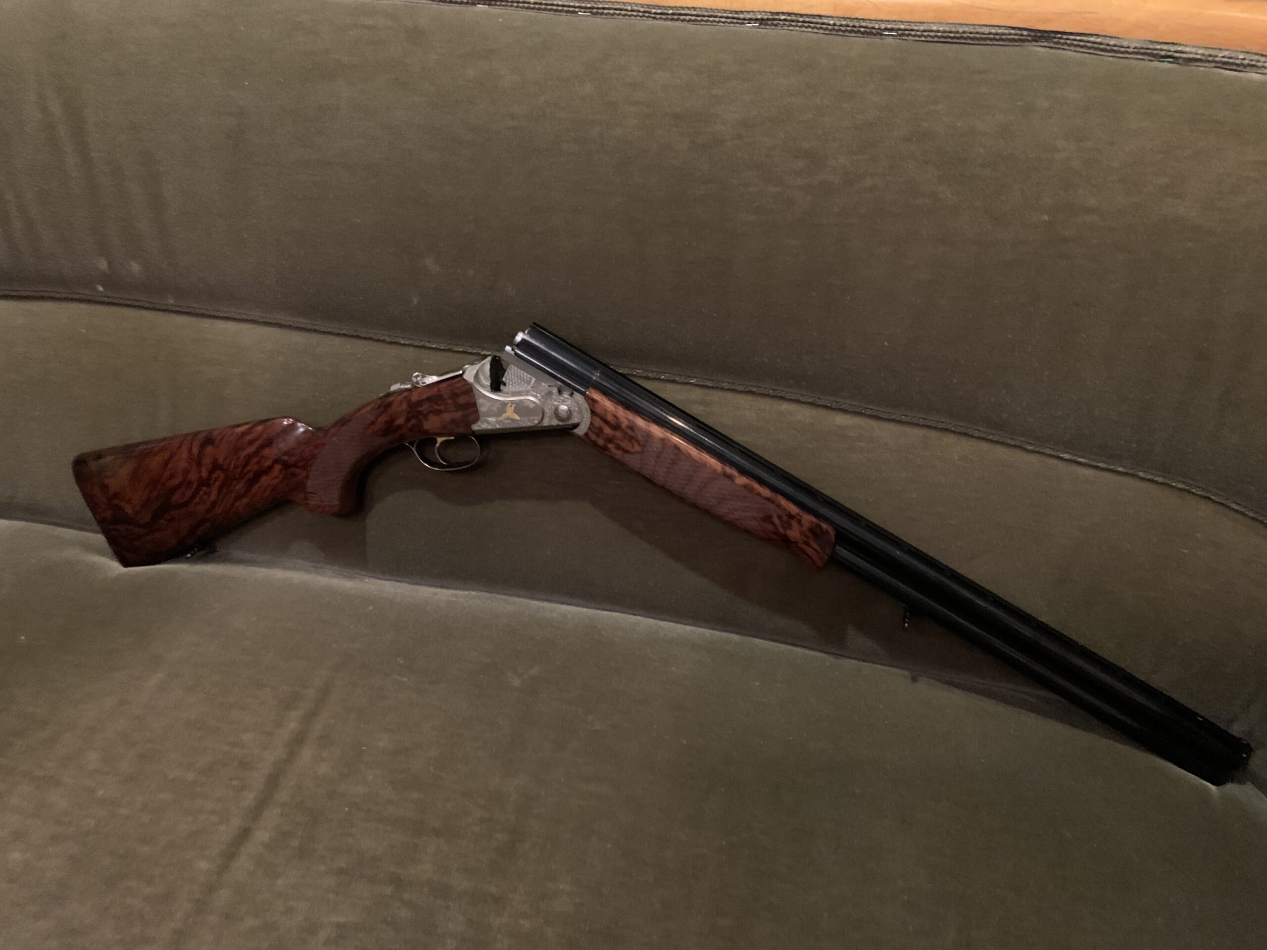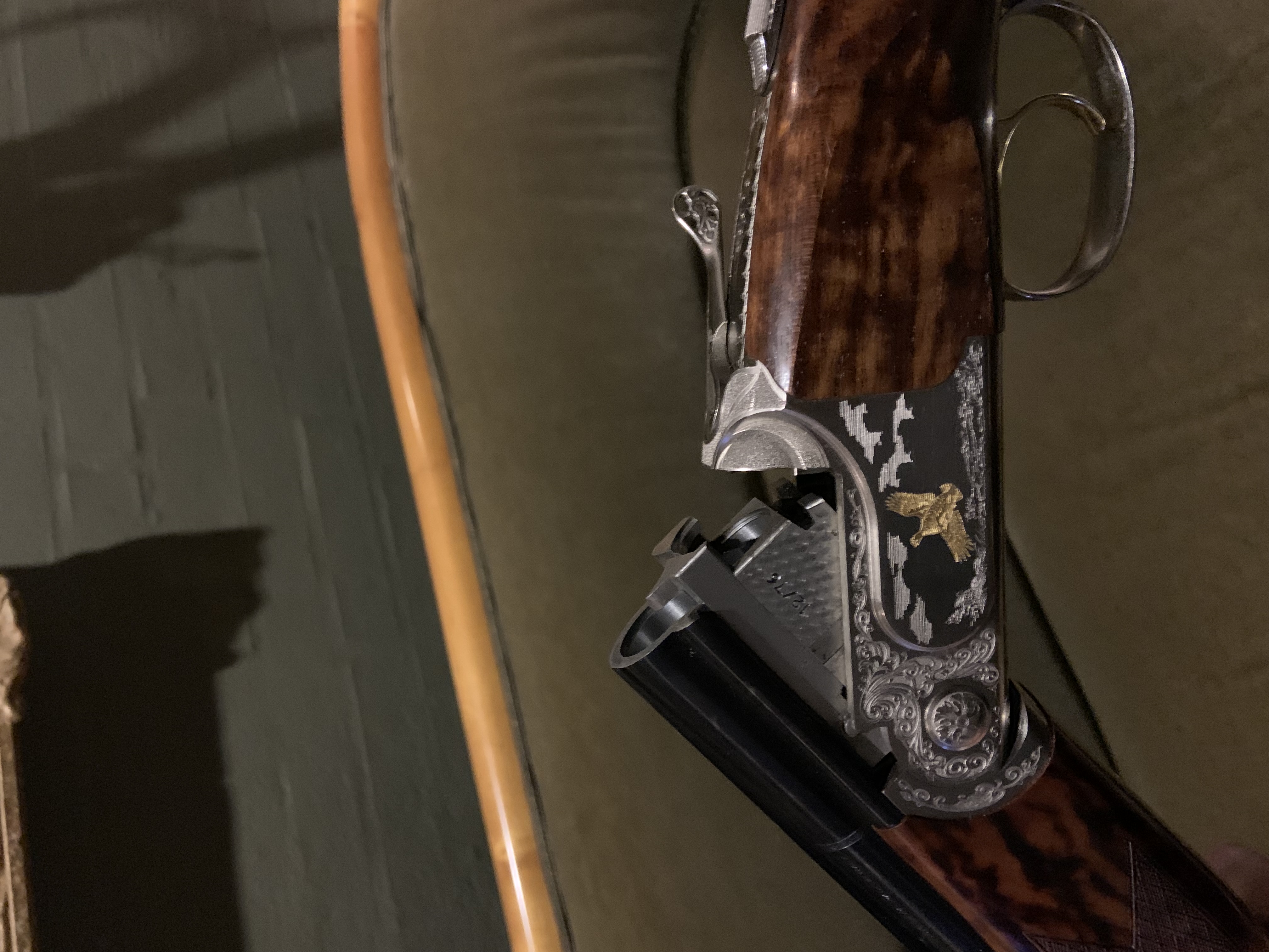 Italiensk Scandicum ATA Modrl Lux Light Over and Under Jagtgevær kaliber 12-70 med ejektor,løbsvælger,forgyldt singletrigger og udskiftelige Chokes,Skovjagtsboret Cyl og 1/2 Chokes.Mange Smukke Graveringer!…
