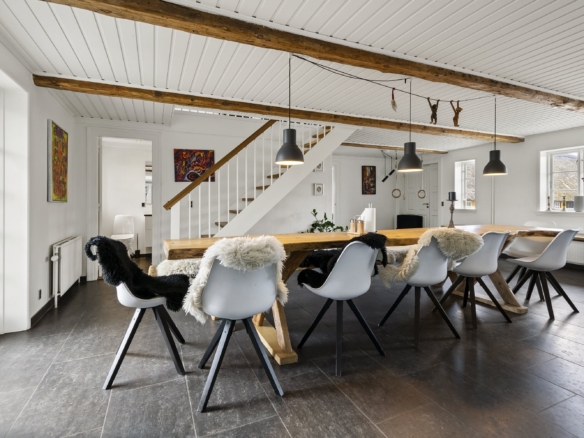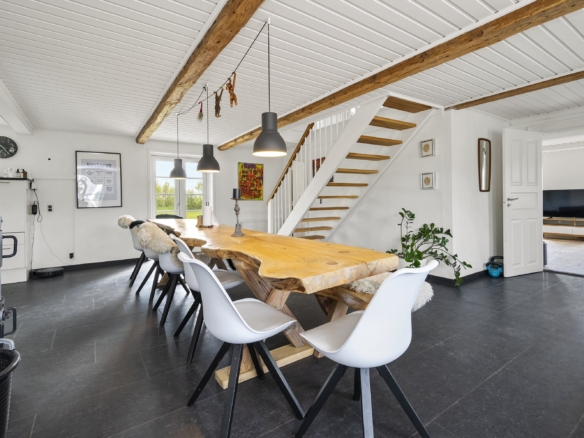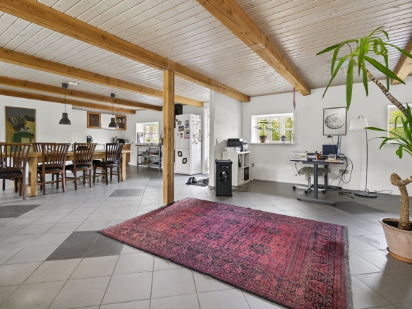 Attraktiv og moderniseret ejendom på knap 10 hektar, heraf ca. 6 hektar landbrugsjord. Indeholder rummeligt stuehus, erhvervslejemål samt tre lejligheder (to ferie- og én helårsbolig) med samlet årlig lejeindtægt op til 628.000 kr. inkl. forbrug. Værksted på 353 m² og maskinhal på 1.090 m² med mulighed for hestehold. Naturskøn beliggenhed med god privatliv.