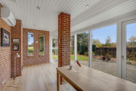 Huset har et baghus, som giver adgang til yderligere værelser og hobbyrum, samt en stor dobbeltgarage. Derudover følger et velholdt maskinhus med ejendommen, perfekt til værktøj, landbrugsudstyr eller hobbyprojekter. Ejendommen opvarmes med jordvarme, hvilket giver lav energiudgift og miljøvenlig opvarmning.