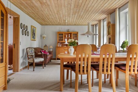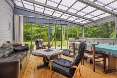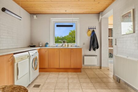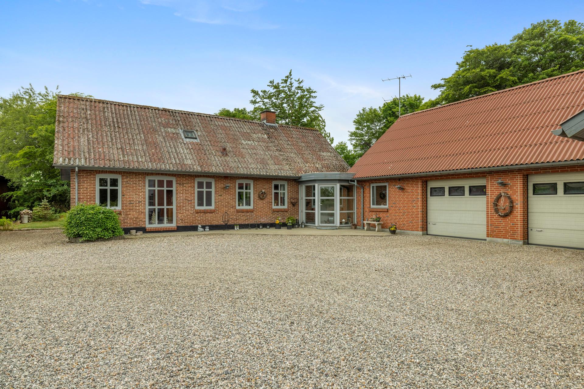 i alt 205 m2 bolig og 27 m2 udestue. Boligen fremstår pæn og vedligeholdt og med jordvarmeanlæg fra 2014