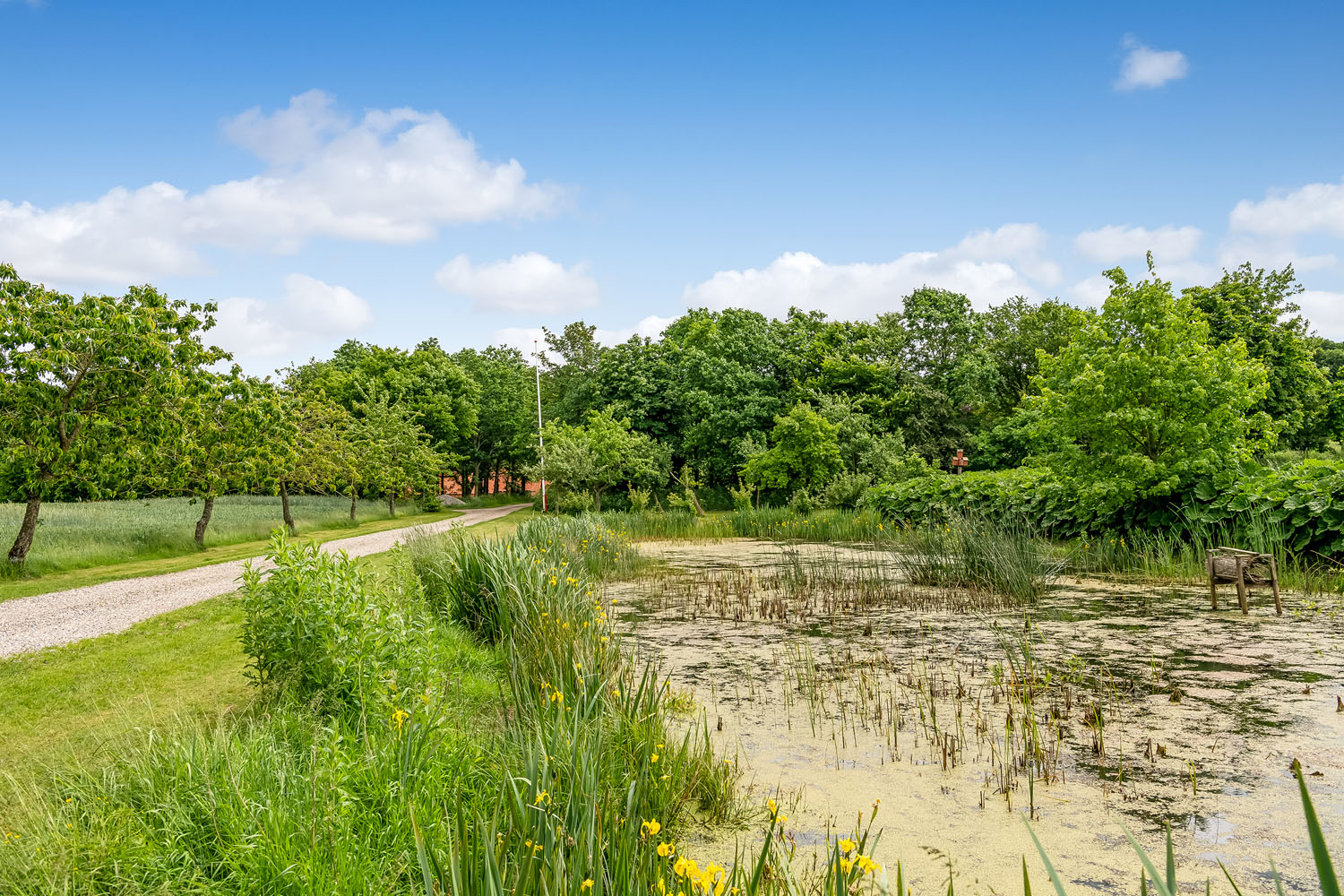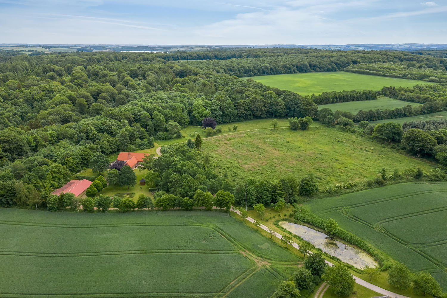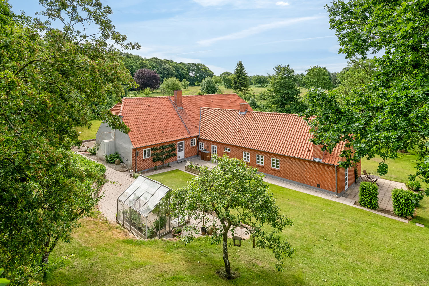 får man en 13,54 ha grund. Selv ejendommen ligger lidt inde ad en stille grusvej.