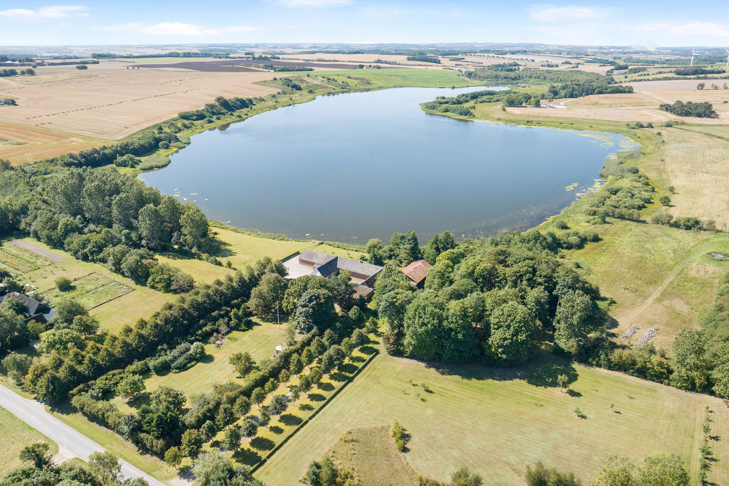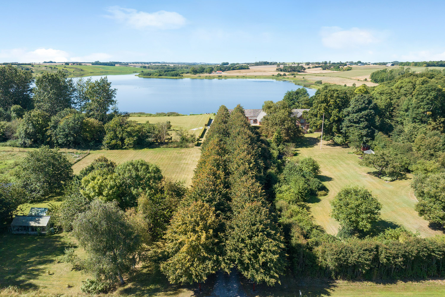Man får egen sø og funktionelle driftsbygninger hvor der er plads til både bolig, landbrug og fritidsaktiviteter – kun 10 km fra Randers.