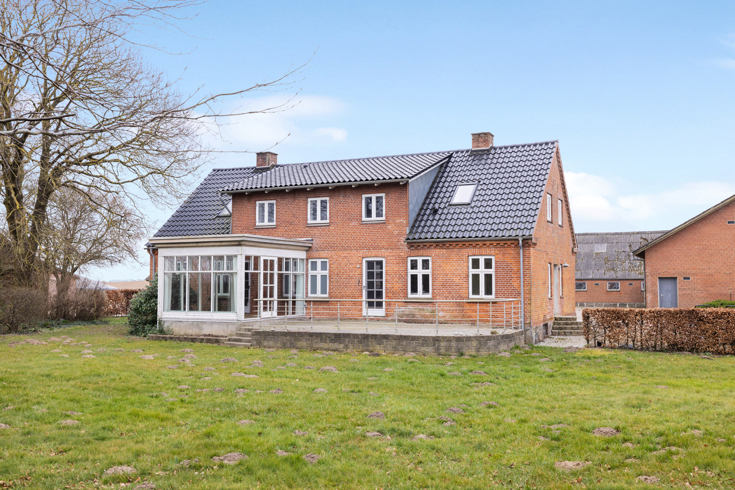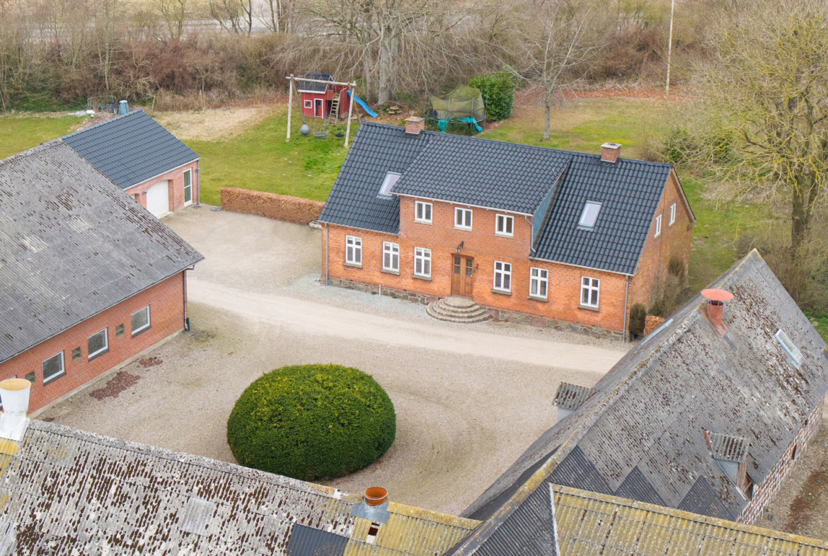 Denne ejendom har masser af plads og muligheder for at kombinere bolig og erhverv i landlige omgivelser. Boligen er 275 m2, og der medfølger 4176 m2 driftsbygninger på en 2,1 ha grund.