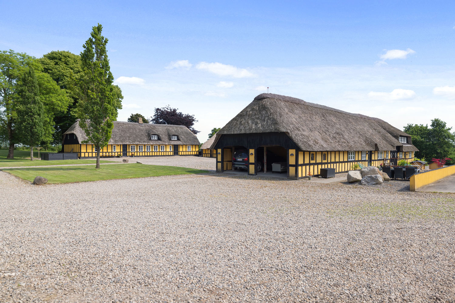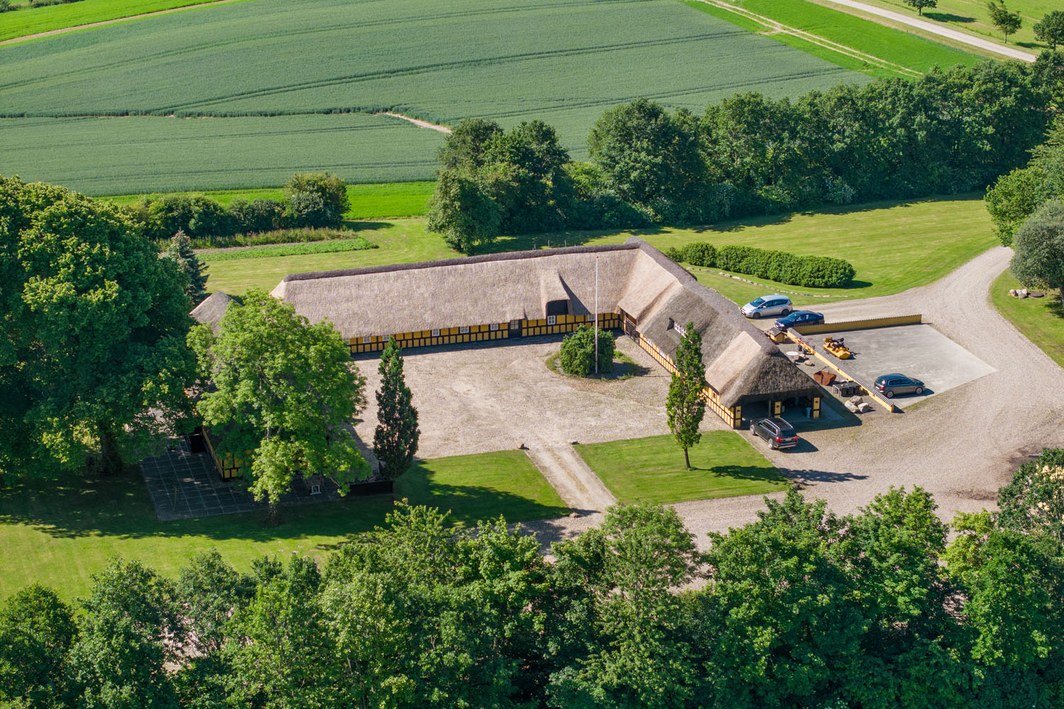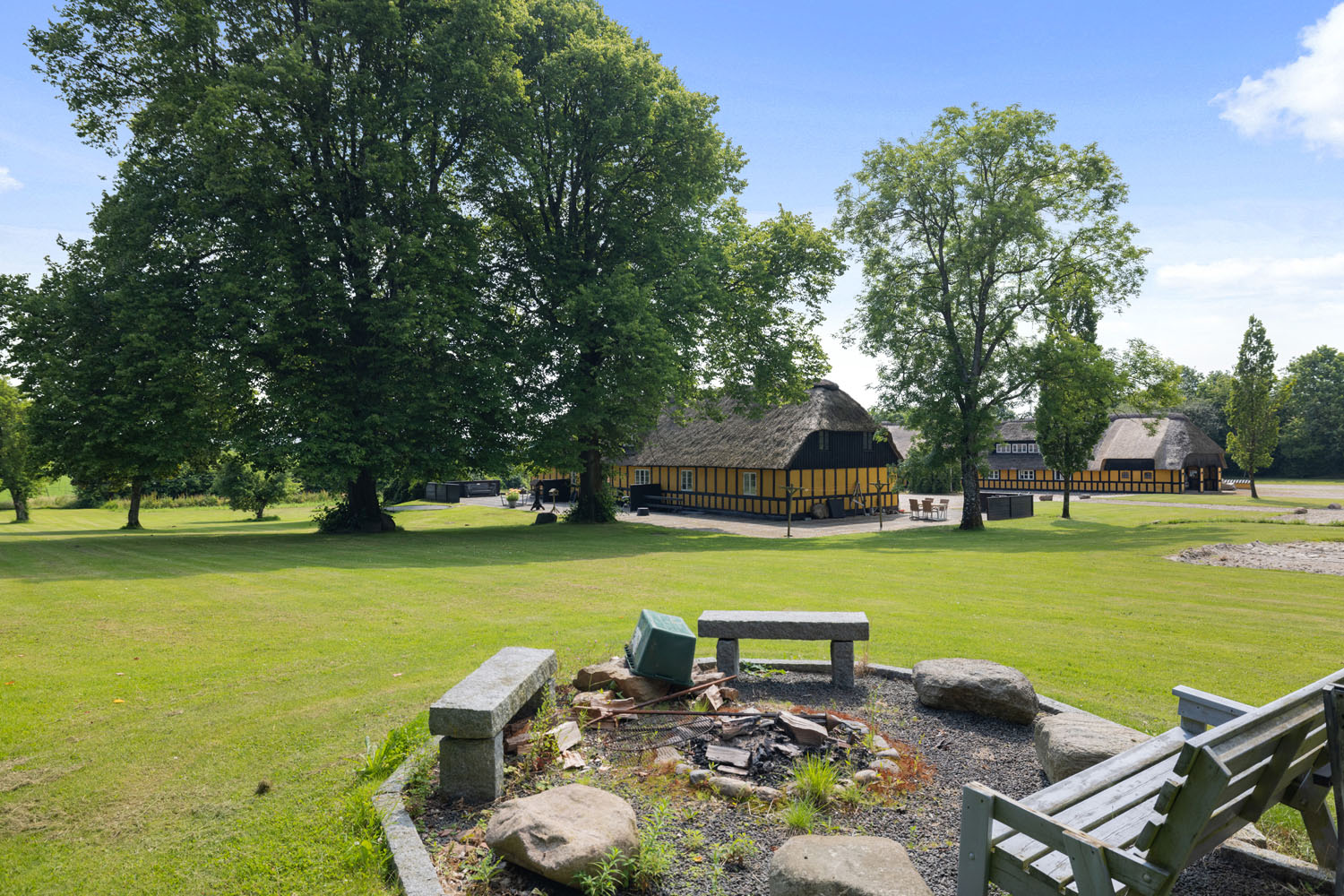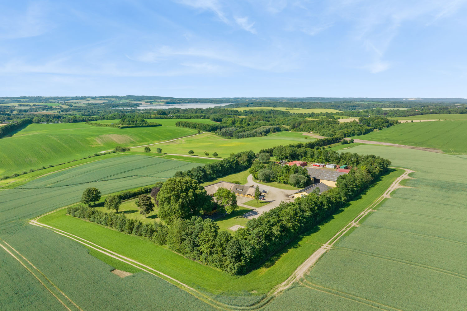 Ejendommen strækker sig over knap 10 hektar, hvoraf ca. 6 hektar drives som landbrug. Bebyggelsen omfatter et rummeligt stuehus, et erhvervslejemål og tre lejligheder – to ferielejligheder og én helårslejlighed – hvilket sikrer en attraktiv lejeindtægt og mulighed for flere generationer kan bo sammen.