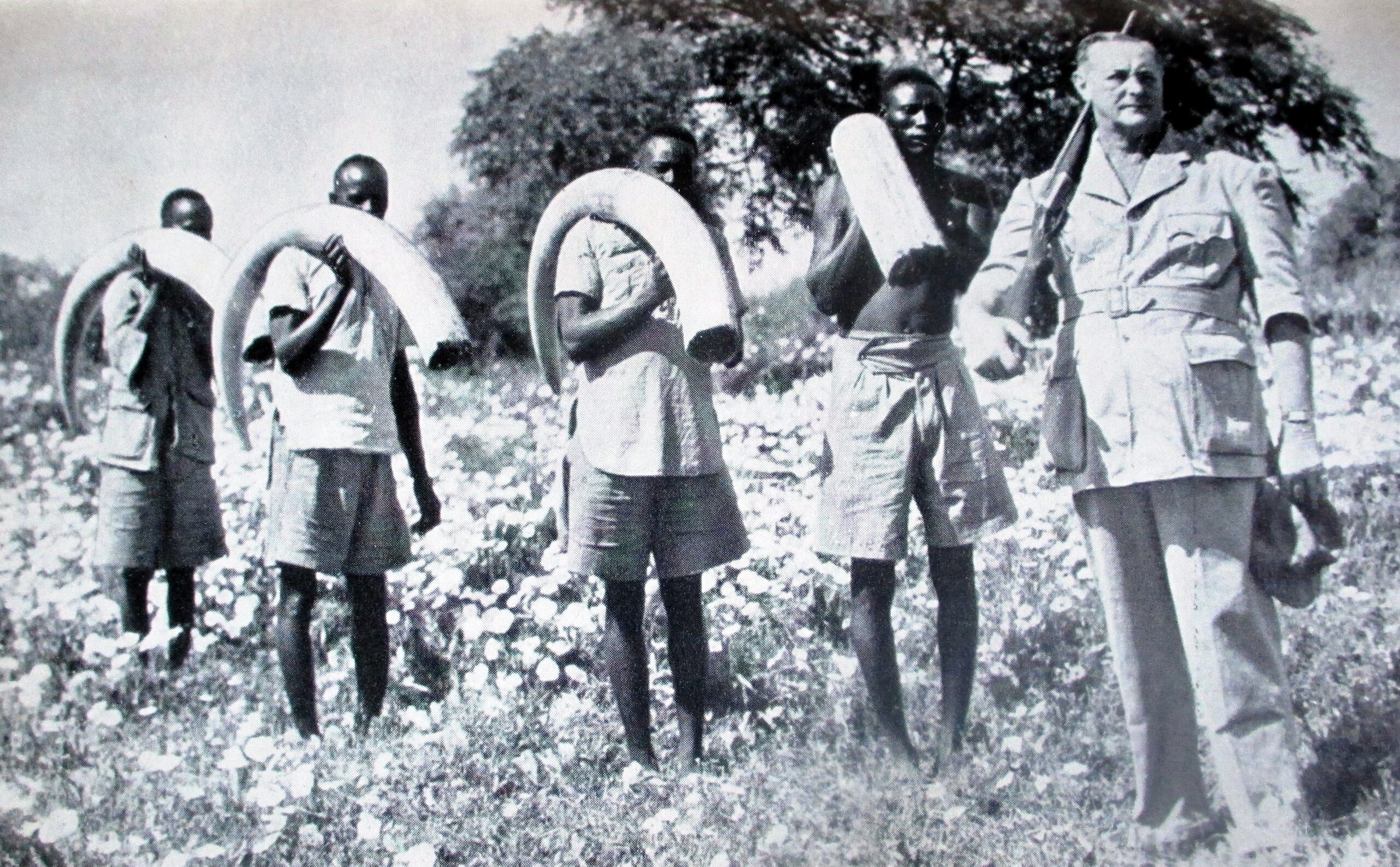 Elefanttænder som disse på 70 kg stykket, som John Hunter her poserer med, var der langt imellem allerede cirka 1950. I dag findes der næppe elefanttyre med stødtænder som disse.