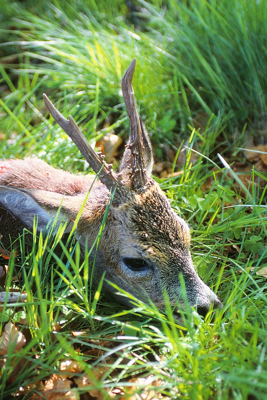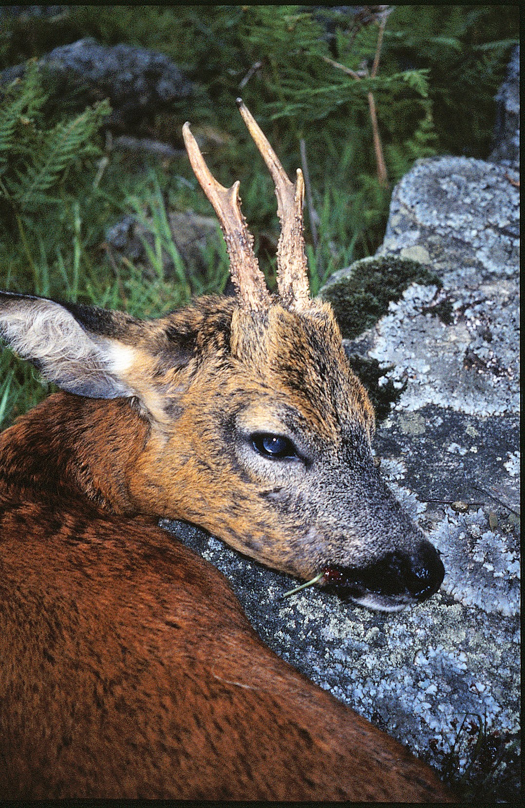 Toårig buk, afskudt, fordi stængerne er korte, og den ene stang er uden for- og bagsprosse, og det vurderedes, at den næppe ville udvikle disse senere i livet. Foto: Henning Kørvel