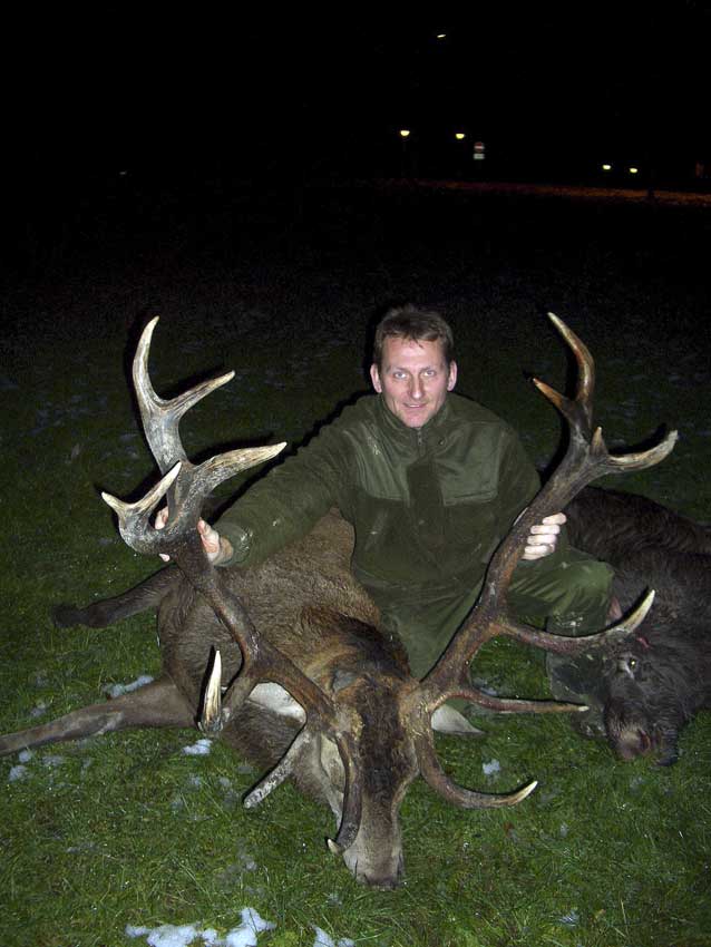 – Jeg bliver siddende i jagttårnet i ca. 15 minutter. Og først nu begynder bukkefeberen. Jeg ringer til min kammerat i Danmark, Jan Hansen … Jeg har skudt en kæmpehjort, udbryder jeg. Så stor som dem vi så i Polen.