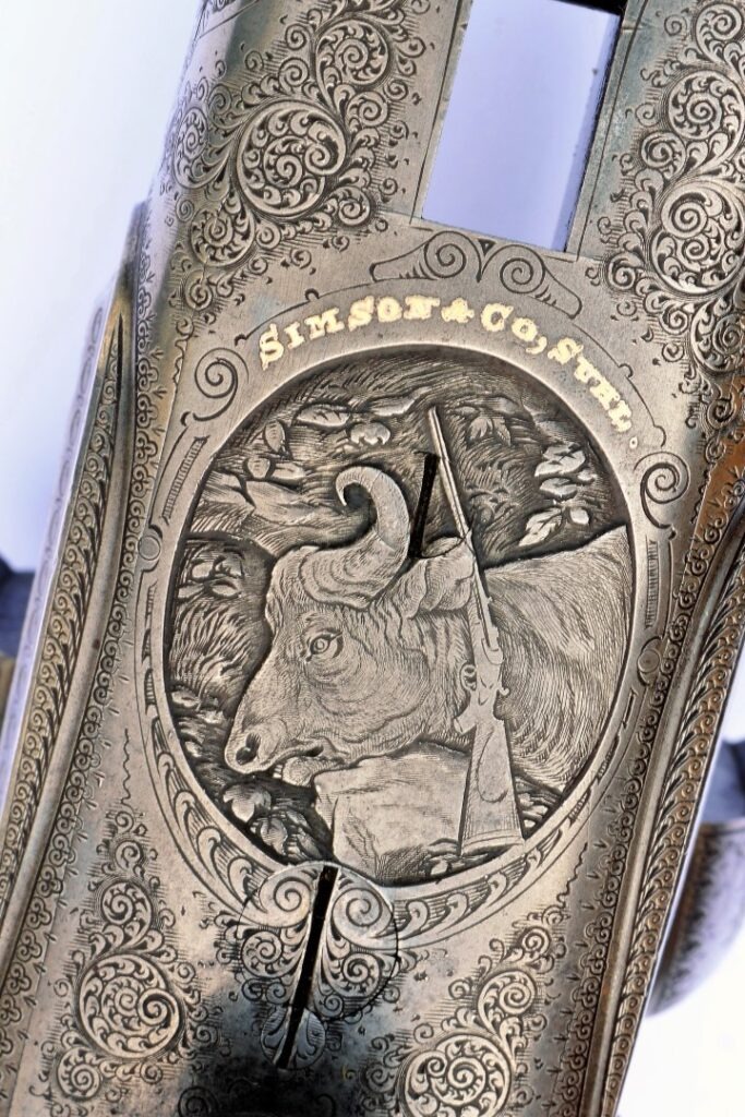 En kafferbøffel pryder det andet våbens underside af låsen.