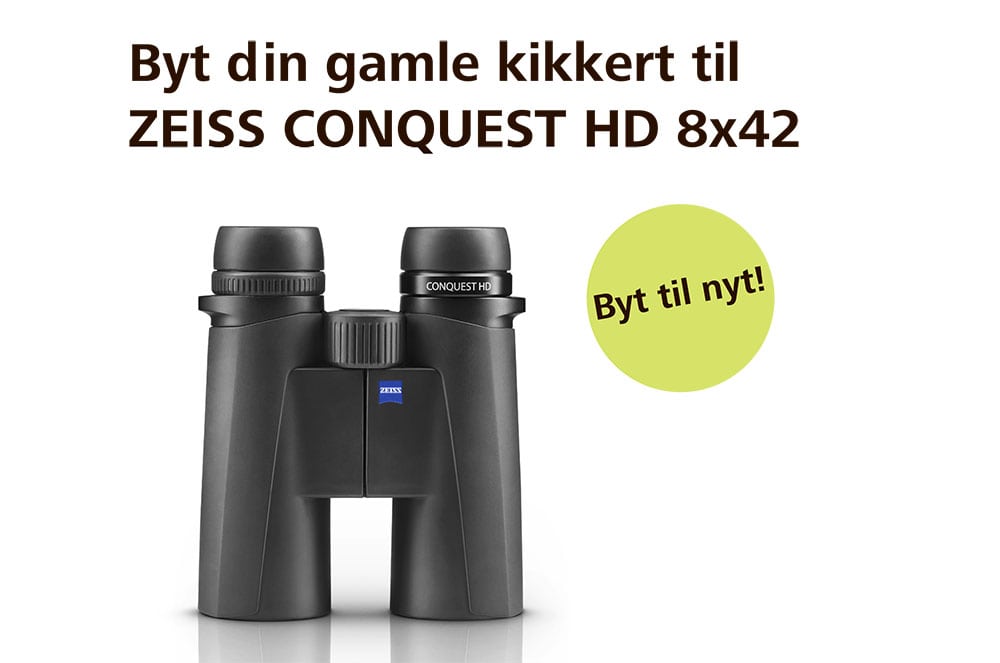 Du indleverer din gamle håndkikkert – uanset fabrikat – og køber en ny ZEISS CONQUEST HD 8×42 til 6.990 DKK, hvilket er 1.200 DKK under den vejledende udsalgspris.