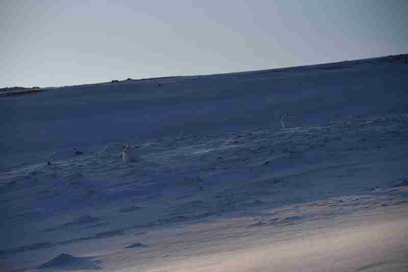 Undervejs flagrede en sneugle mod nord, den tog en runde, og passerede os i modsat retning. Det var et utroligt smukt syn at se denne ensomme fugl flyve med sine tunge, rolige vingeslag forbi os.