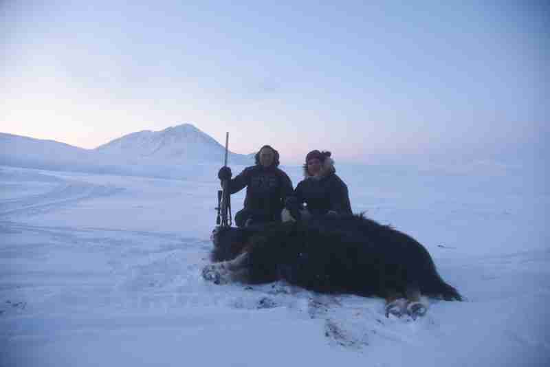 Vi kørte ud ad Irene Bay og teltede en halv times kørsel mod sydvest, hvor vi tidligere havde set en flok moskusokser, som Terry og Olaf gerne ville jagte. Jeg parterede haren, som kom i gryden, og så tog vi afsted på moskusjagt.
