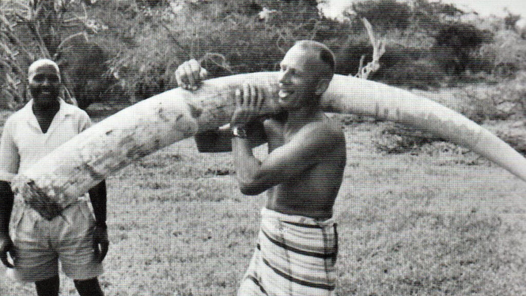 Lesennitch fra Düsseldorf var glad for den 100-pounder elefanttyr, som Sten Cedergren guidede ham til i Kasigua Block i 1971. (The Adventurous Life of a Vagabond Hunter, Safari Press, USA).