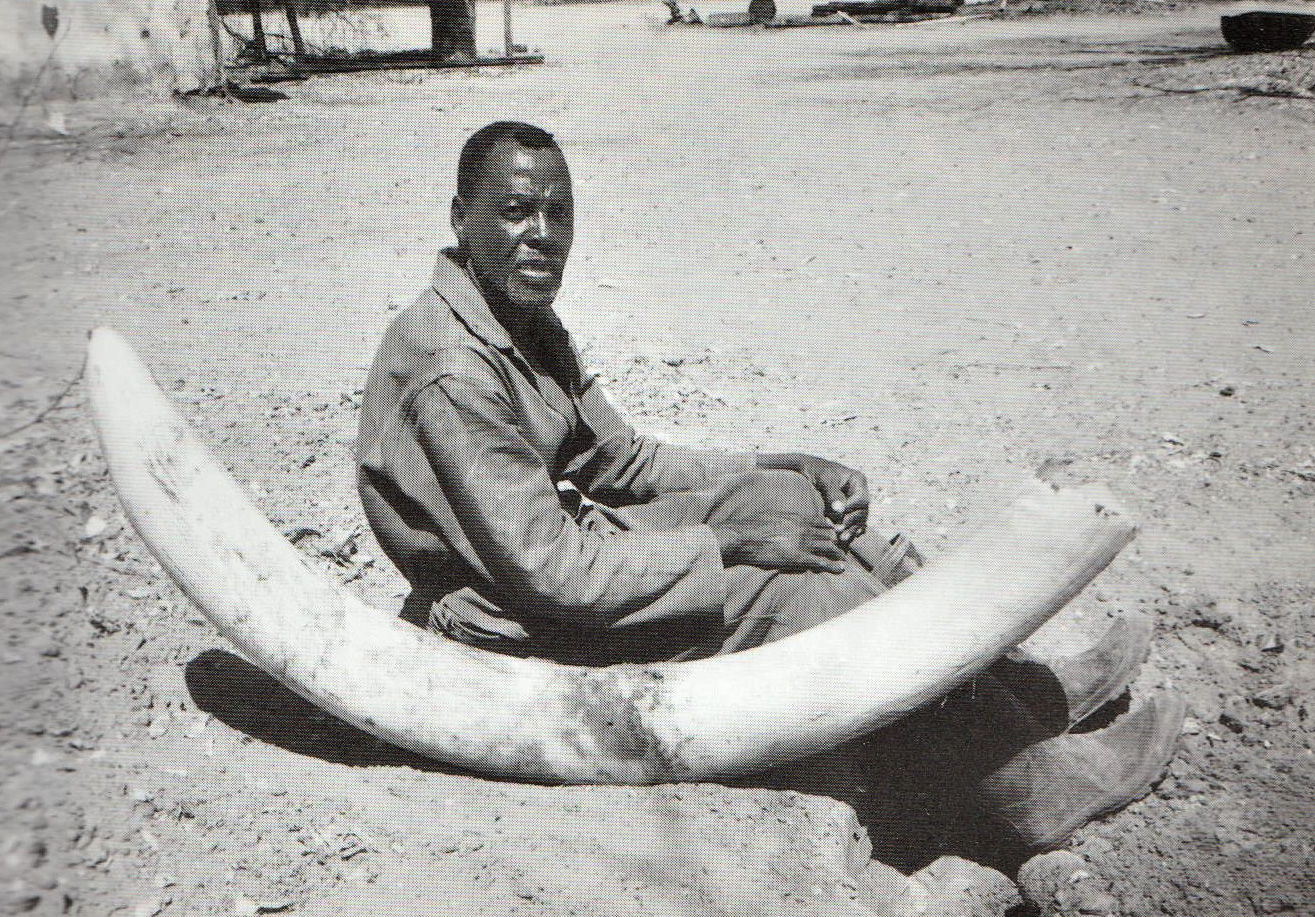 Stødtand fra elefanttyr fra Zimbabwe, der er kortere, men noget kraftigere end stødtænder fra det østlige Afrika. (The Adventurous Life of a Vagabond Hunter, Safari Press, USA).