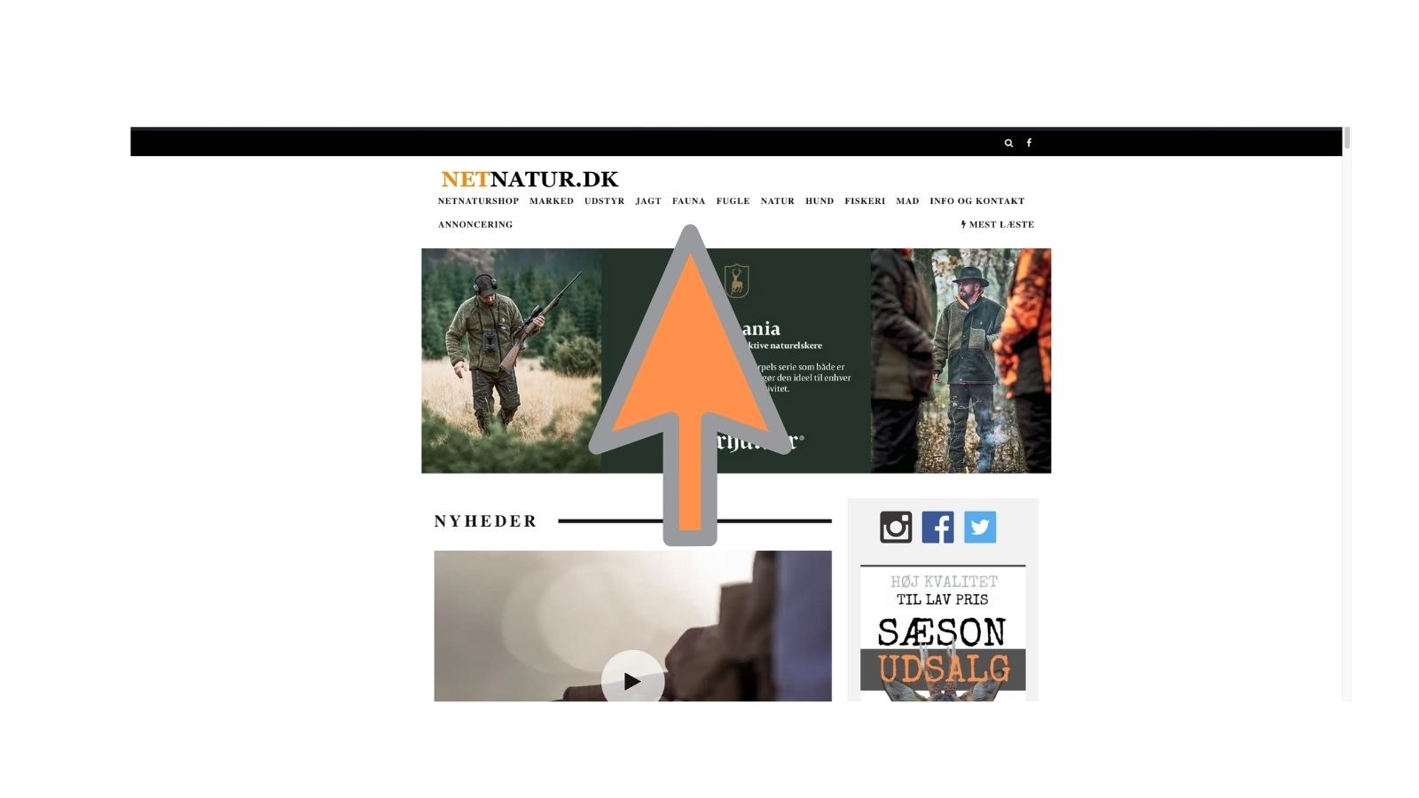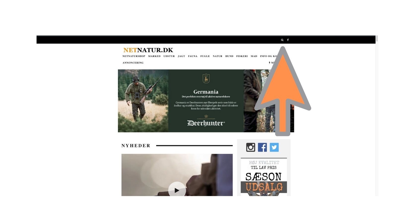 Øverst i menubaren finder man sektionerne. De samler alle informationerne efter emne og her findes f.eks. sektionerne jagt, hund, marked og shop.