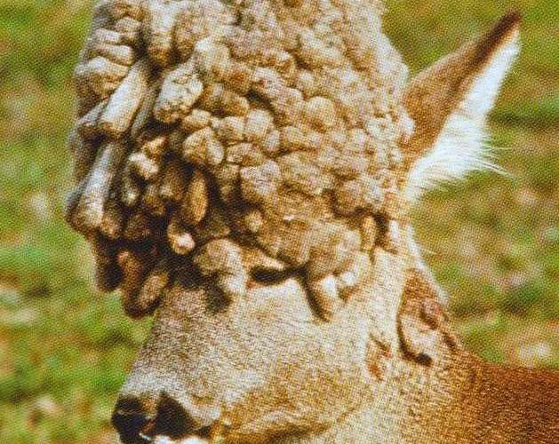 Resultatet bliver, at opsatsen ikke kastes, men fortsætter med at vokse. I de mest ekstreme tilfælde vokser opsatsen ned over panden og blinder bukken.