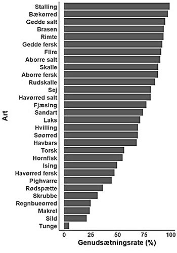 Forskerne fokuserer i rapporten primært på de arter, som bliver fanget i de danske fiskevande, og de giver et bud på, hvor stor en andel af de fangede fisk, der bliver genudsat.