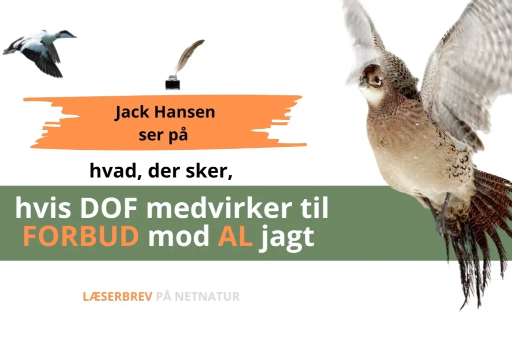 Den store viden som ligger hos DOF er uundværlig og bør til enhver tid være inddraget i også f.eks. jagtområdet – men jægerne og jagten er mindst ligeså uundværlige som DOF. – Jægerne skal ikkeende med at gå rundt og skyde udpeget skadevoldende vildt.