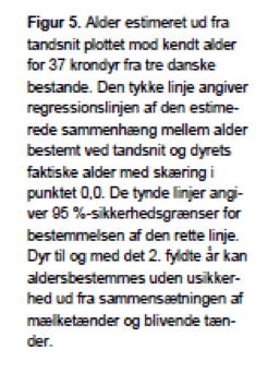 At det i virkeligheden udmærket kan være tandslidsmetoden, der i dette tilfælde angiver den rigtige alder, ses af at fig. 5 viser eksempelvis en 5-årig hjort til at være 14 år og en 7-årig hjort til at være 15 år.
