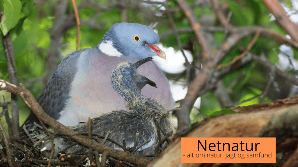 Ringdue med unge på redden. Selv om ynglende duer kendes under flugt ved at de ofte trækker alene, kan det næppe helt undgås, at der nedlægges en voksen due, som endnu har mælk i kroen og dermed sandsynligvis unger i reden. Det er forklaringen på, at jagttiden på duer gennem tiden er blevet flyttet frem .. og tilbage.