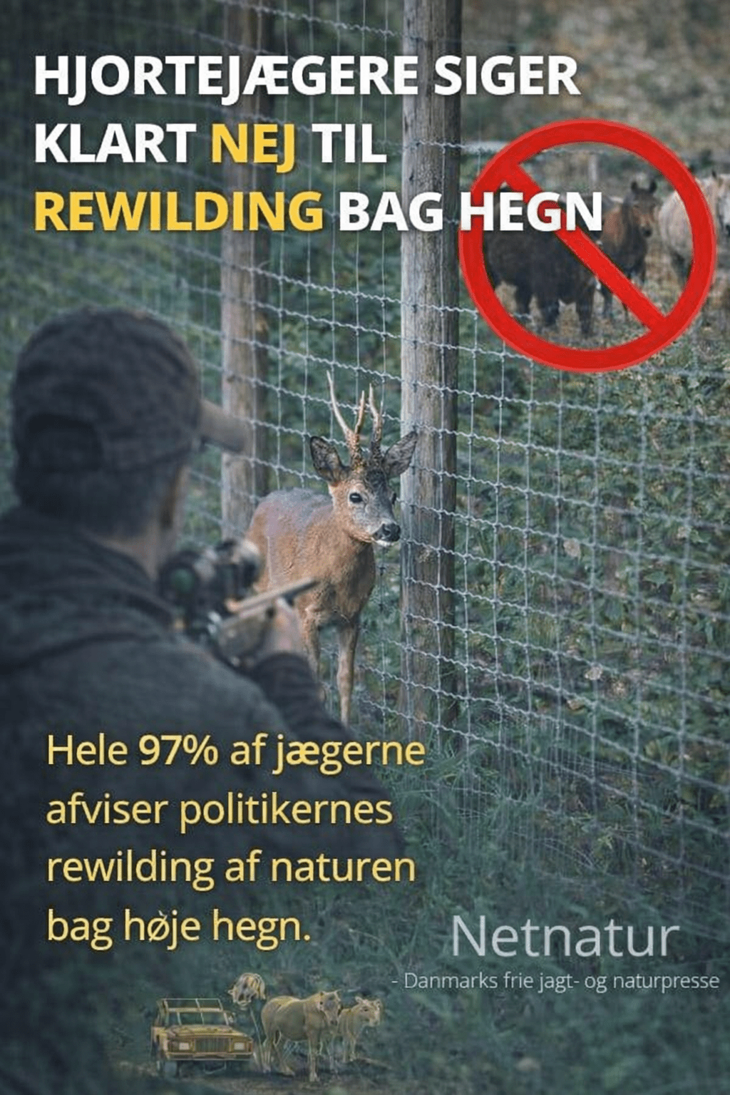 “Ved et højt placeret skud lammes dyret ofte, men dør ikke i “knaldet”. Det kan derfor ikke følge sine naturlige instinkter og flygte, og stresses unødigt med højere lidelse til følge.”