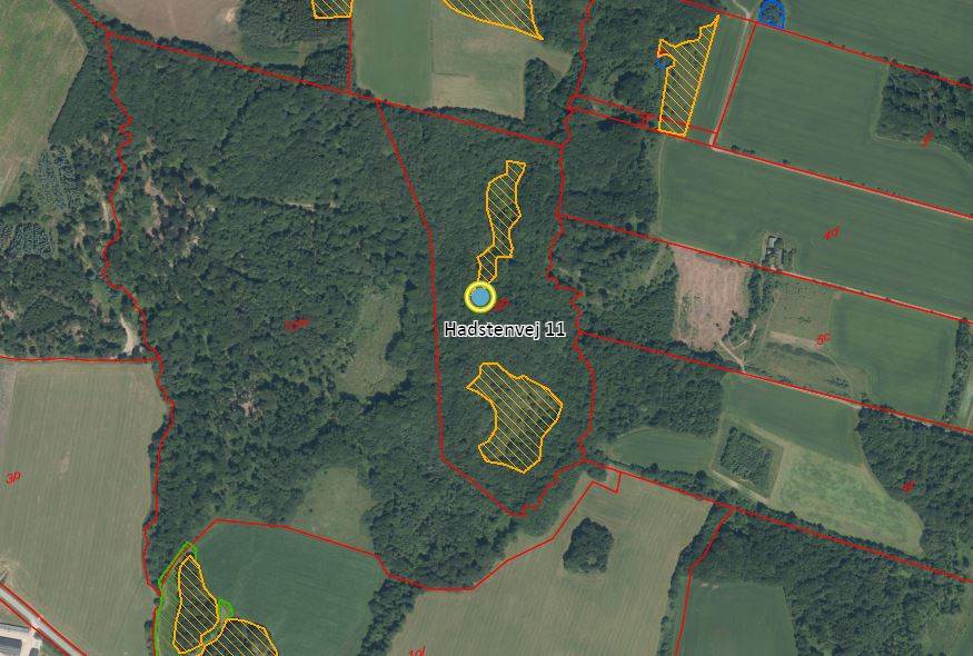 Hadstenvej 11 er en selvstændig skovejendom på 10,89 ha. Ejendommen er beliggende mellem Hadsten og Langå nærmere bestemt Høgebjerg Skov i det kuperede østjyske terræn.