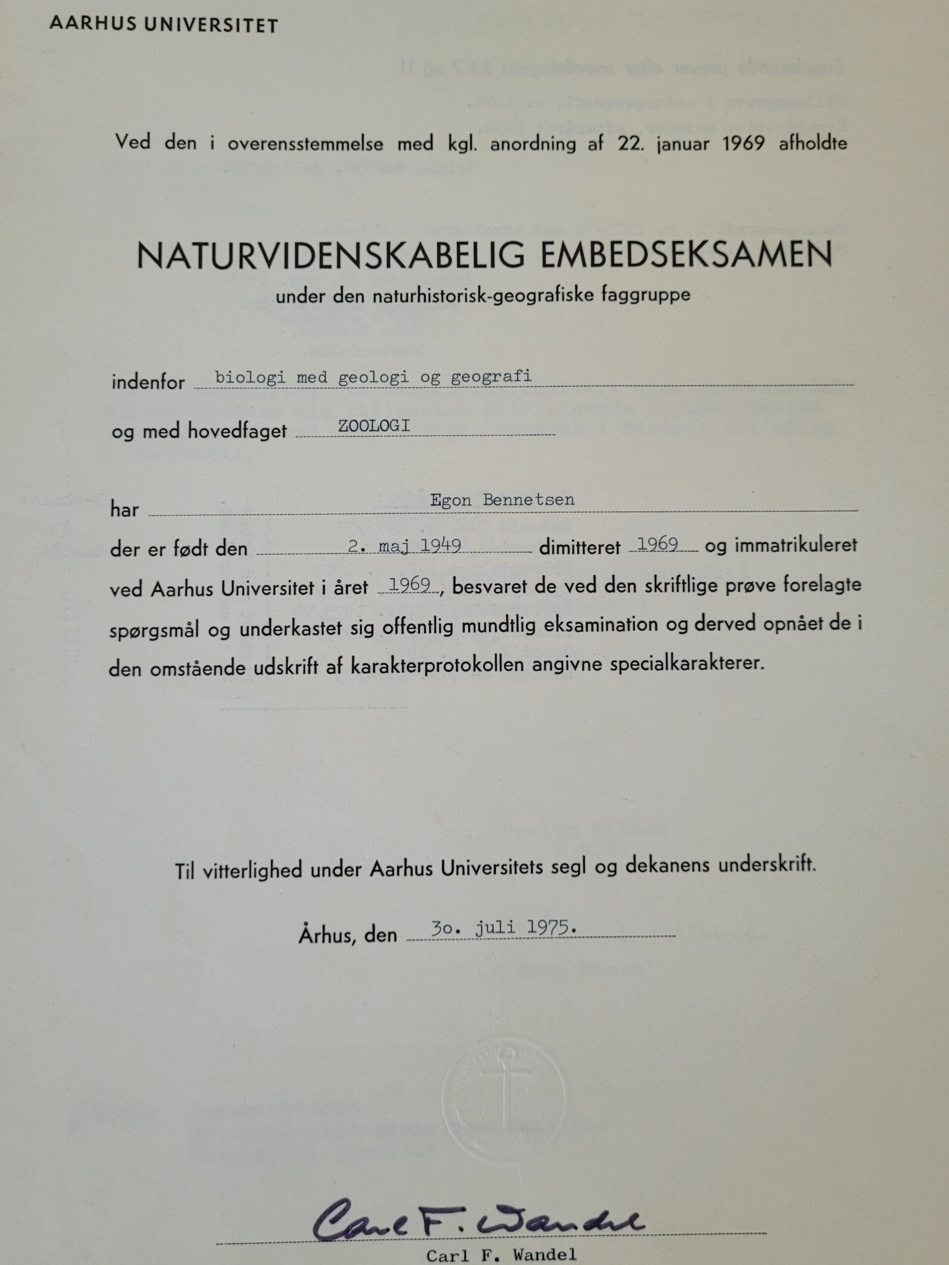 Da jeg ikke har noget at skjule i den anledning, og absolut ikke ønsker at pynte mig med lånte fjer, fremlægges hermed dokumentation for at jeg er Cand. scient. i biologi med geografi og geologi, har hovedfag i zoologi og speciale i vildtbiologi.