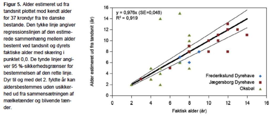 ”Det forhold, at en undersøgelse af alder for 11 hjorte nedlagt i Vest- og Nordjylland i jagtsæsonen 2015/16 ikke kunne afsløre én eneste hjort på over 8 år (Lars Haugaard, upubl. data), kan understøtte en formodning om, at den jagtlige dødelighed for hjorte overalt i landet er af samme størrelsesorden som på Djursland.”
