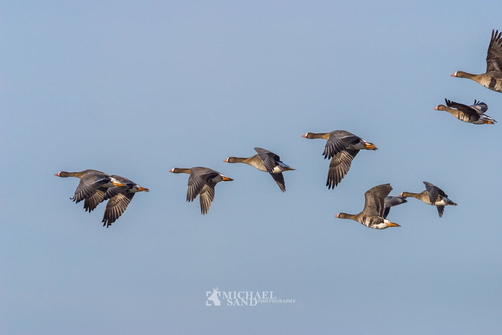 Blisgæssene er ret sky, og de flygter, hvis man kommer nærmere end 1000 meter, og optællingen foregår derfor fra luften.