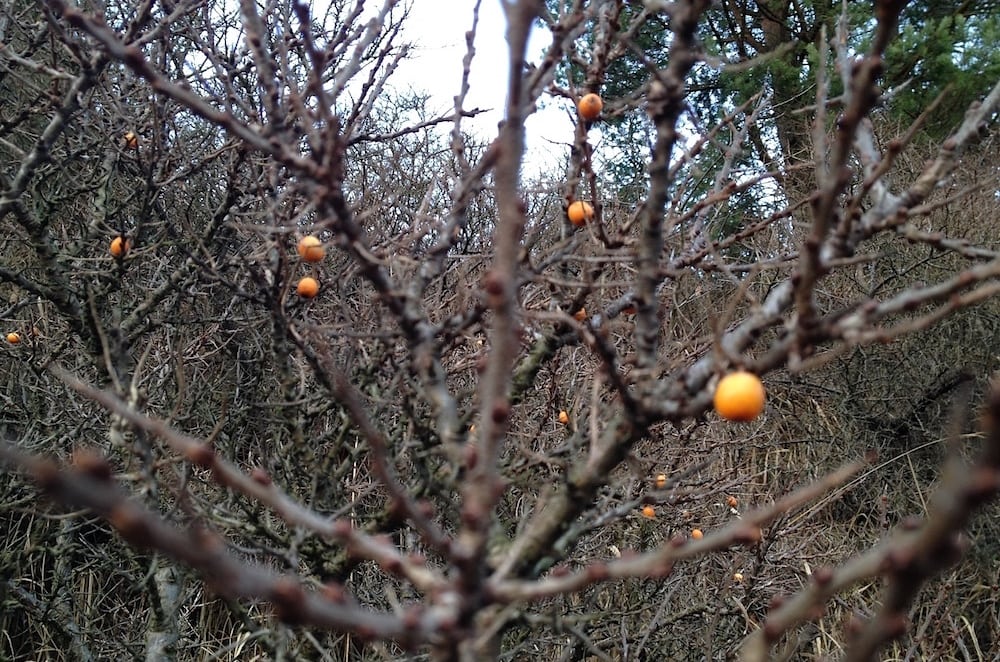Næsten alle æblerne er blevet til skrog, og rønnebærtræerne er ribbet, når havtornen tager over. Måske er det havtornens måde at sikre sin overlevelse og videre udbredelse på?