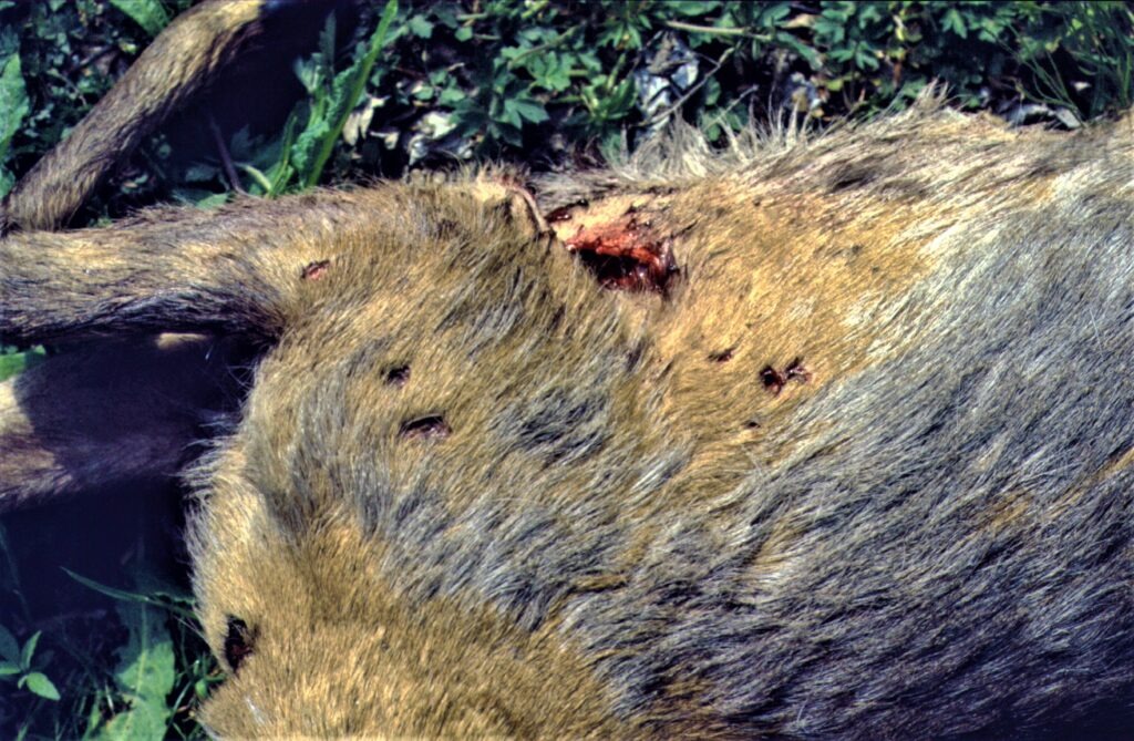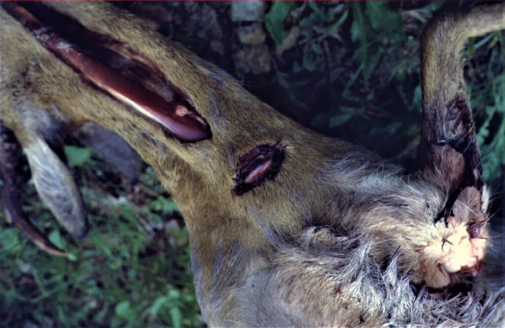 På halsen havde bukken et snitsår fra en større del af kuglen, der rikochetterede efter at have ramt en gren.