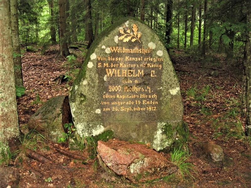 Ud af i alt 2.133 kronhjorte skød Kejser Wilhelm II (27. januar 1859 – 4. juni 1941) 321 kronhjorte i Rominter Heide. Mindesten, som stadig eksisterer, informerer om flere af disse, og der blev blandt andet rejst en mindesten over, at han 28. september 1912 skød en 14-ender kronhjort, der blev hans kronhjort nummer 2.000.