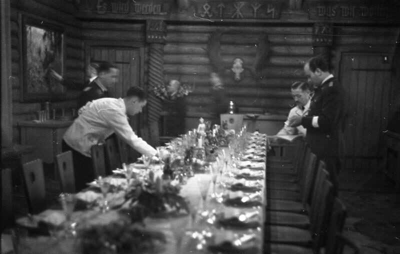 Personale dækker op til jagtmiddag i Herman Görings jagthytte i Rominter Heide.