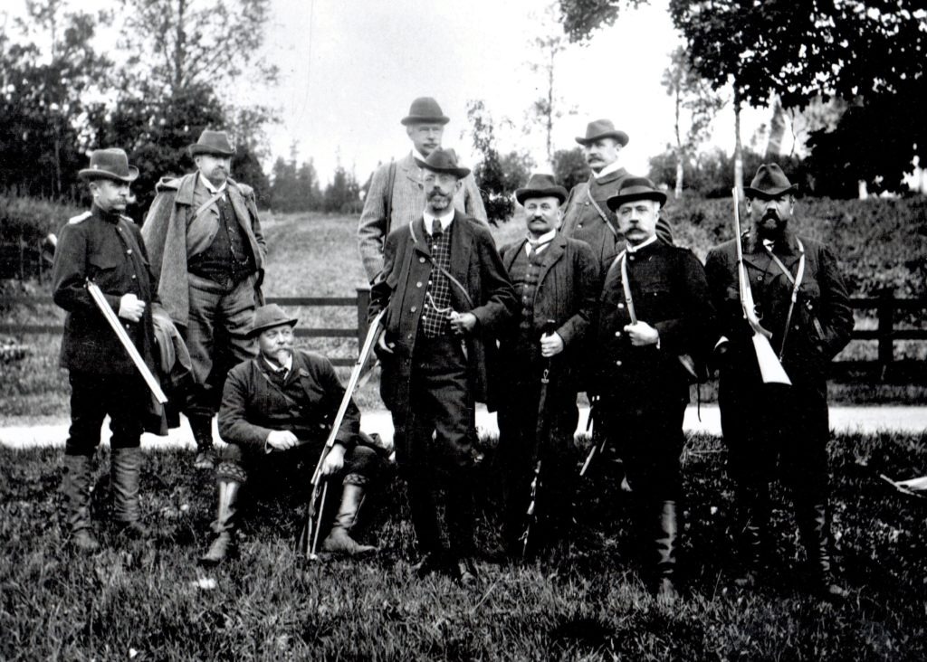 Fra en kongejagt i Sverige ses Erik von Eckermann yderst til højre. På grund af sit store røde skæg, blev han kaldt for Waldteufel (Skovdjævel). Kongen står som nummer fire fra venstre i forreste række. Dengang var det almindeligt, at jægere poserede med lukket haglbøsse, og selv om det må formodes, at våbnene var afladt, kunne ingen med sikkerhed vide det.