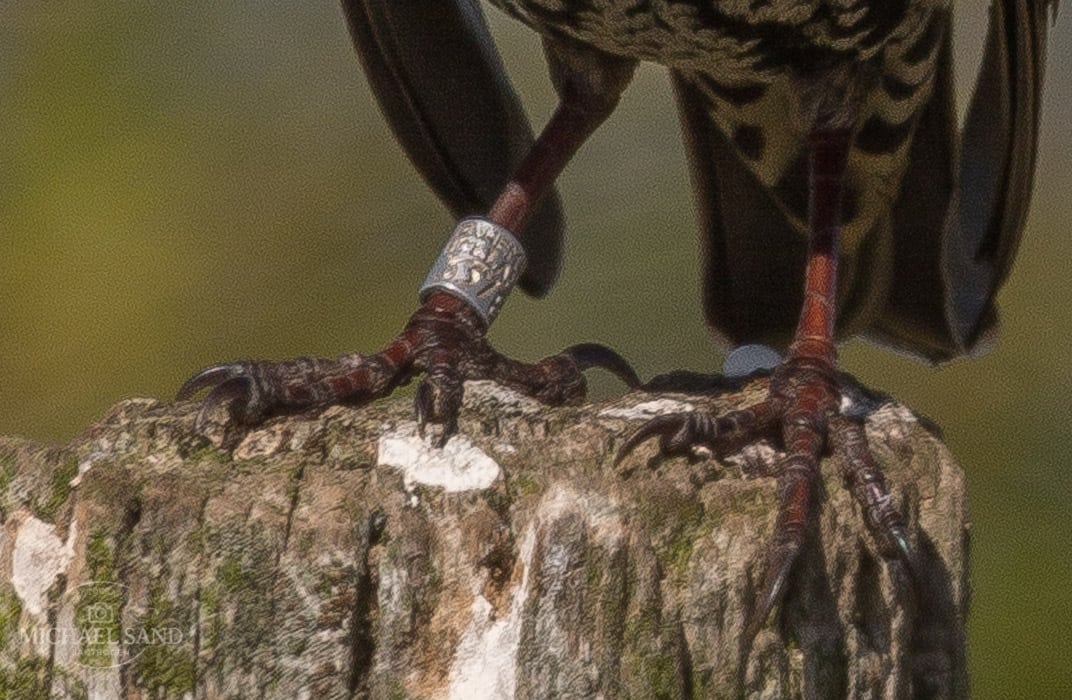 Fuglen er nemlig forsynet med en ring, men desværre kan vi ikke aflæse ringen.