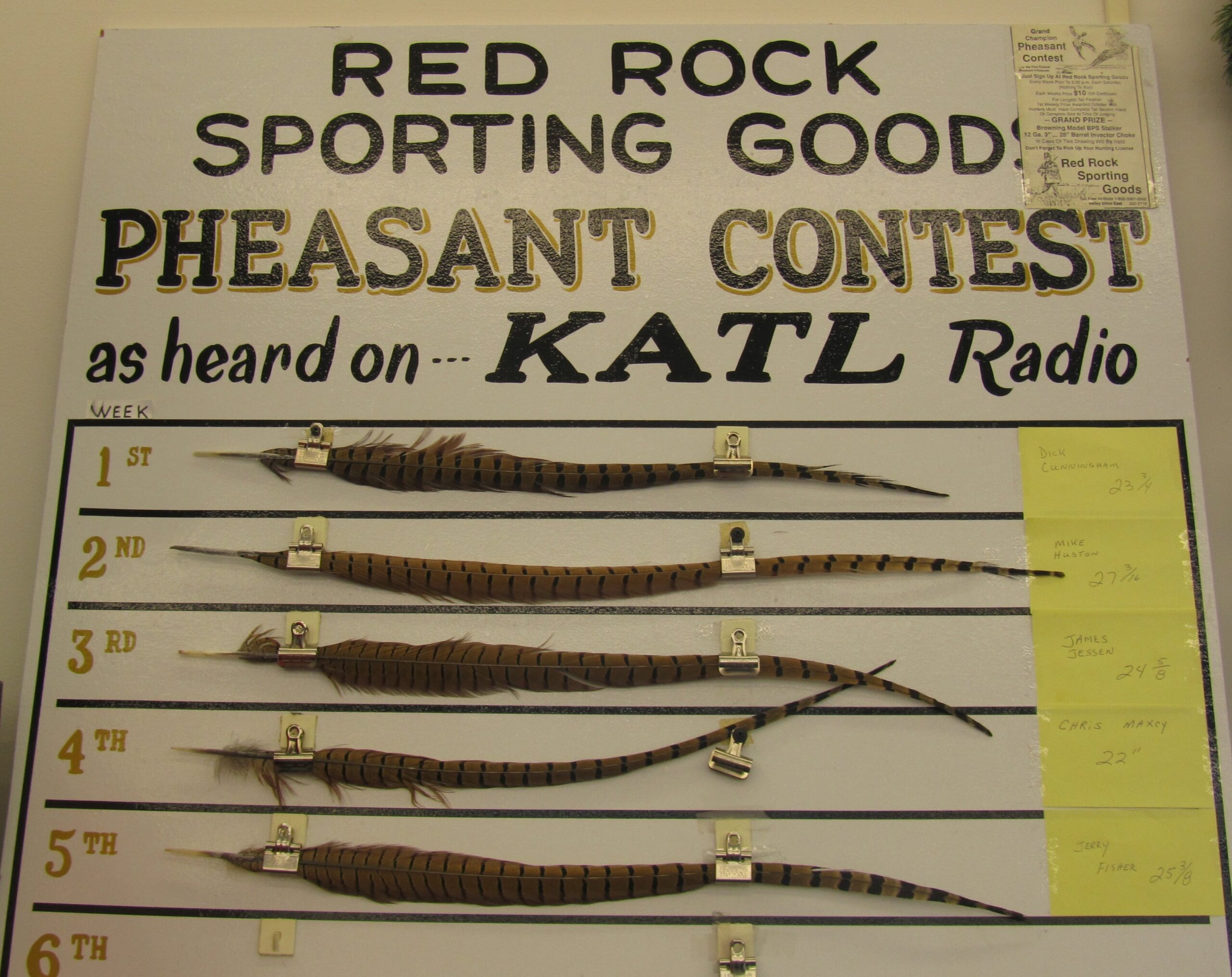 Mike Huston ligger til at vinde den prestigefyldte konkurrence om den længste halefjer fra sæsonens fasanjagt i Montana