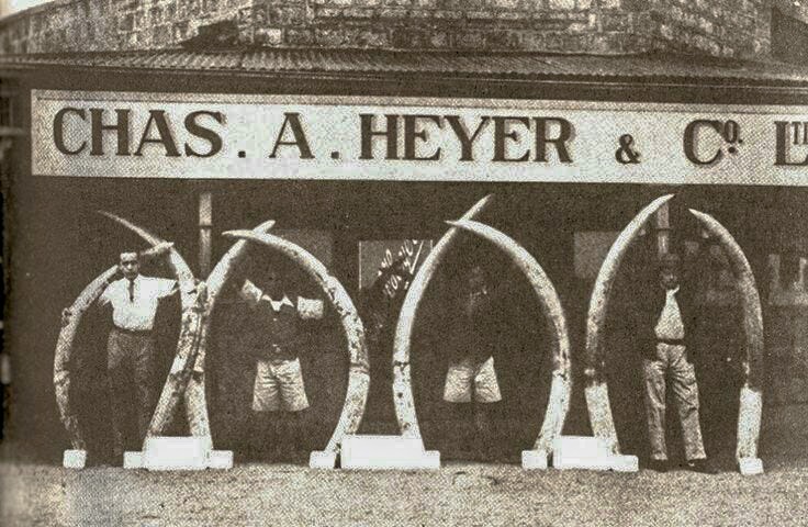 Karl Fritz Paul Zimmermann kom i 1929 til Kenya for at hjælpe til med at opbygge en konservatorvirksomhed for tyskeren Chas A. Heyer og Co. Ltd, men efter hans død i 1931 tog Zimmermann over. Elefanttænderne er, som det fremgår af billedet, store og flere af disse er på over 100 pounds pr. stødtand.