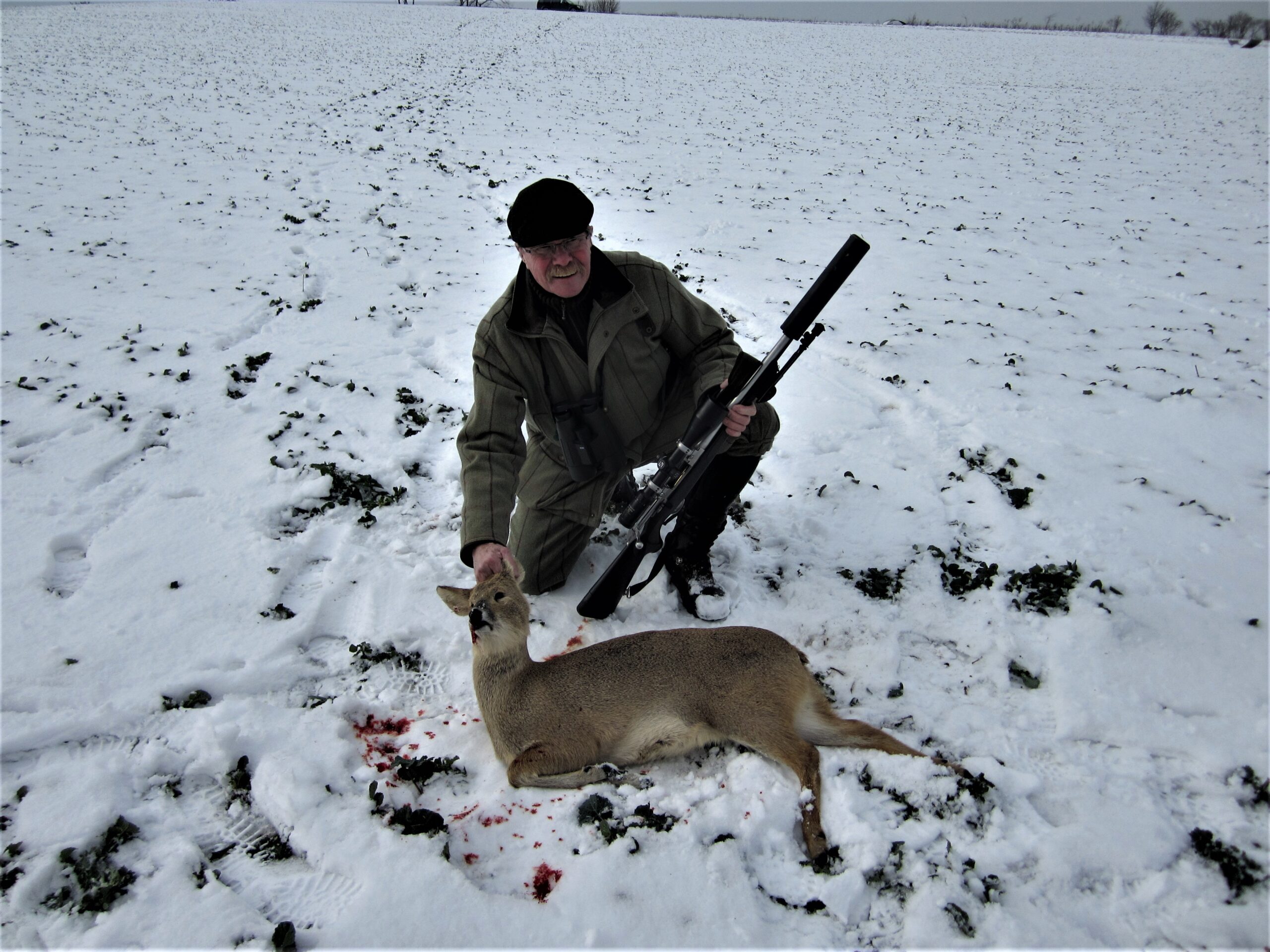 Da rødsigtet kort efter står fastlåst på bladet, trykker jeg på aftrækkeren og hører et svagt smæld, efterfulgt en lyd, der bedst kan beskrives som ”blob”, da kuglen træffer målet, og råen vælter om i sneen. Spjætter lidt med løbene og ligger så stille.