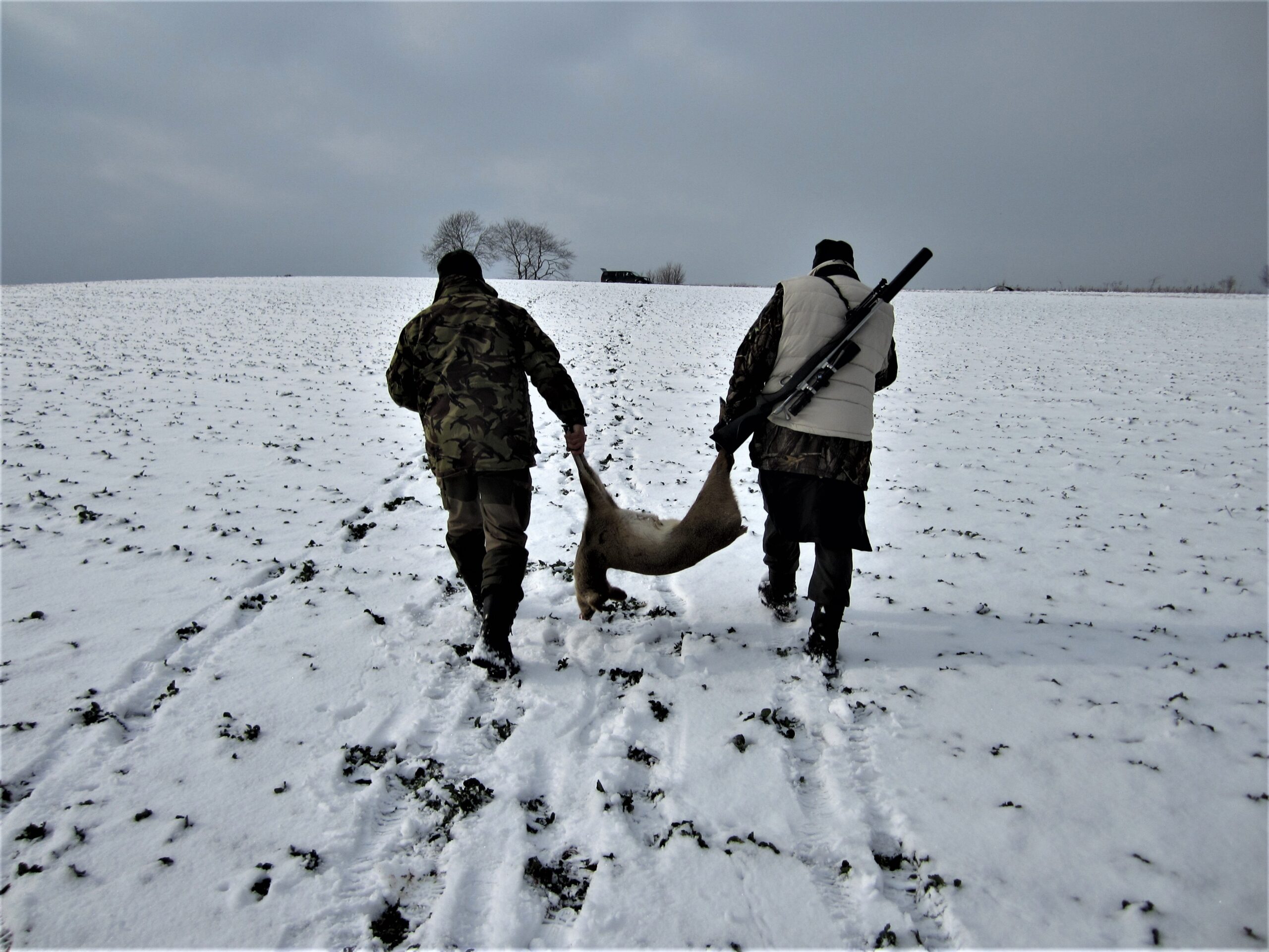 Da vi kort efter ruller op foran jagtrummet med den afsjælede rå i firtrækkerens bagrum, er mine spanske venner allerede ankommet.
