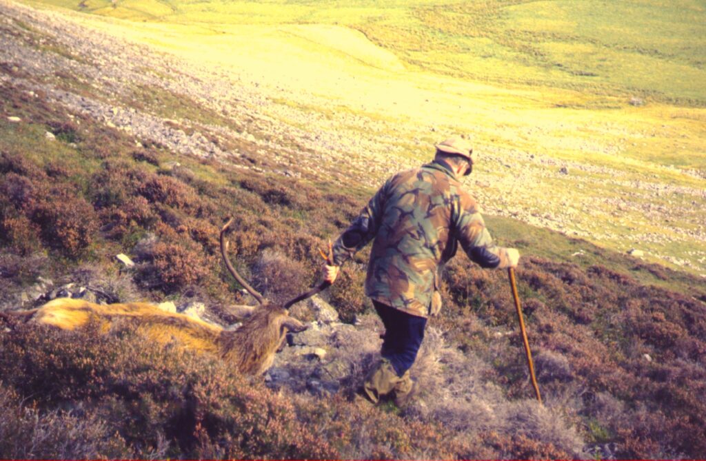 Begge steder, men navnlig omkring Braemar, stod der meget kronvildt med en stor andel af hjorte. Mange af dem er ældre, ofte på retur, og det var først og fremmest dem, godset ønskede afskudt. Af selvsamme årsag ser stalkerne derfor hjorte grundigt an, før der meldes ud til den ledsagende jæger eller jægere om, hvorvidt hjorte der fås for, er afskudsbare. Men det kan give frustration hos jægere, der ikke forstår, hvorfor de ikke får carte blanche til at nedlægge den største hjort i en rudel, men derimod bliver anvist at skyde en returhjort, som ofte kun har øjensprosserne i behold, og stængerne er relativt korte.
