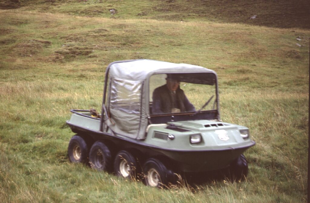 På ladet af deer trolleyen – Argo Cat – kan der snildt ligge to nedlagte hjorte, og med lidt held endda tre. Klokken 16.00 stod det klart, at der ville blive brug for den, for da nåede lyden af et skud frem til trommehinderne, og kort efter at Johnny på walkien havde fået en melding fra David om, at Benny havde skudt en hjort, kørte han af sted med det terrængående køretøj, der over stort set hele Skotland har taget over efter pony, som tidligere brugtes til transport af nedlagt kronvildt, men blev overhalet inden om af deer-trolley, som er billigere i drift end ponyer.