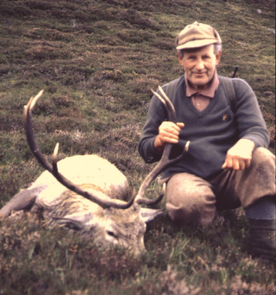 Min anden hjort skød jeg sammen med Luis. Han elskede at hjælpe til på Invercauld Estate i jagtsæsonen. Han og jeg kom næste dag på skudhold af en rudel hjorte, der sad på en terrasse nede under os. Vi kravlede frem til kanten i den høje lyng, og skudholder var cirka 100 meter. Luis lod mig selv vælge den hjort, jeg syntes bedst om. Jeg valgte den, der sad med siden til, så jeg kunne sigte på bladet, og den forendte i knaldet. I lighed med kronprinsens hjort var den otteender, hvilket er typisk for de fleste højlandshjorte. Færre hjorte bliver 10-endere, men endnu færre bliver royals, hvilket vil sige, får kroner på begge stænger. Vi så kun nogle få royals, blandt andet da en rudel hjorte på 300-400 krydsede hen over en bakketop.